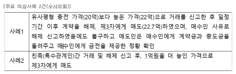 국토교통부는 최근 부동산 실거래가 제도를 악용한 허위신고 문제가 제기됨에 따라, 서울시 부동산 거래 해제건(’23.3~’25.8월 거래분)에 대해 기획 조사를 진행 중으로 높은 가격으로 신고 후 계약금을 몰취하지 않고 거래를 해제하는 등 ‘가격 띄우기’가 의심되는 거래 425건을 대상으로 한다.