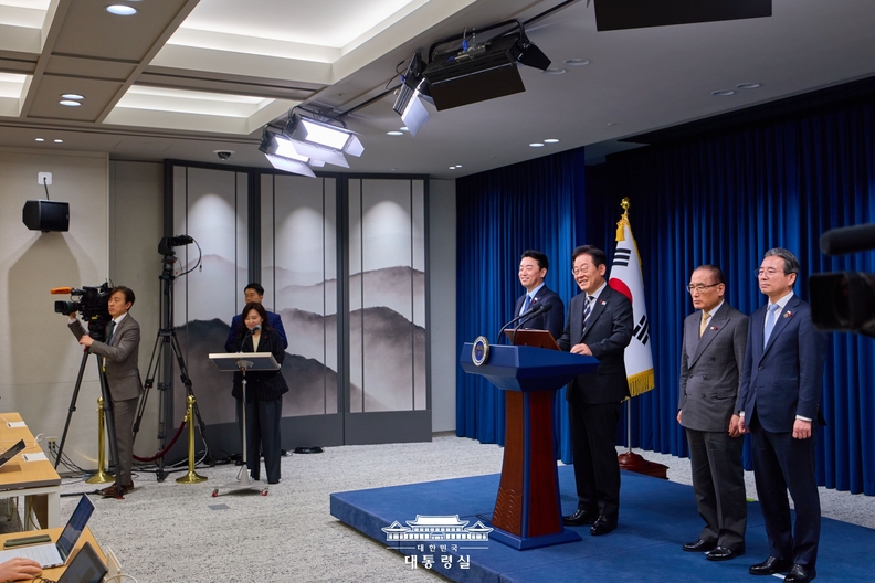 이재명 대통령은 12.3. 비상계엄 1년을 맞은 3일, 서울 용산 대통령실 청사에서 ‘빛의 혁명 1주년 대국민 특별성명을 발표했다.