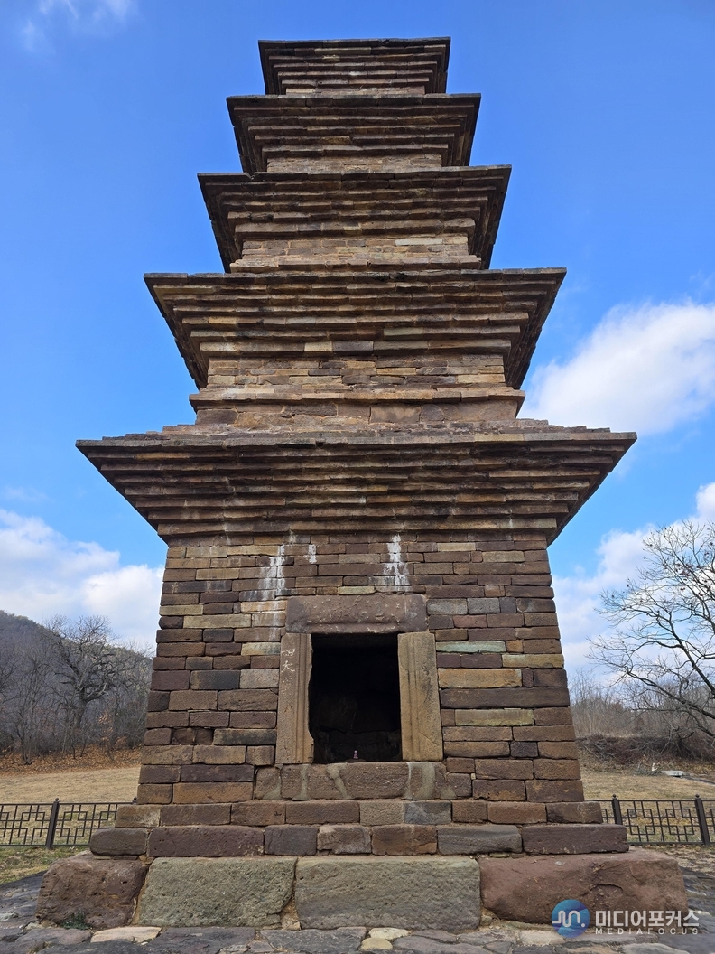 마치 숨겨놓은 보물을 찾은 기분이 들었다. 석탑을 중심으로 병풍처럼 둘러싼 산과 아래쪽에는 반변천이 흐르고 있었다. 통일 신라 말기에 축조된 것으로 추정되는 석탑의 모습이라고는 믿기지 않을 만큼 보존상태가 우수했다.
