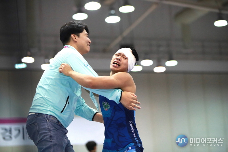 제106회 전국체전이 10월 17일부터 23일까지 부산에서 개최되는 가운데 지난 19일 진행된 레슬링 경기 모습을 사진가 김형호씨가 기록했다. 이번 촬영은 감동과 영감을 순간 포착하는데 초점을 뒀다고 말했다.