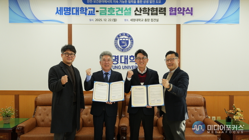 세명대학교는 23일, 본관 총장 접견실에서 금호건설과 학생 현장실습 확대 및 안전·보건관리 역량 강화를 위한 산학협력 업무협약(MOU)을 체결했다.