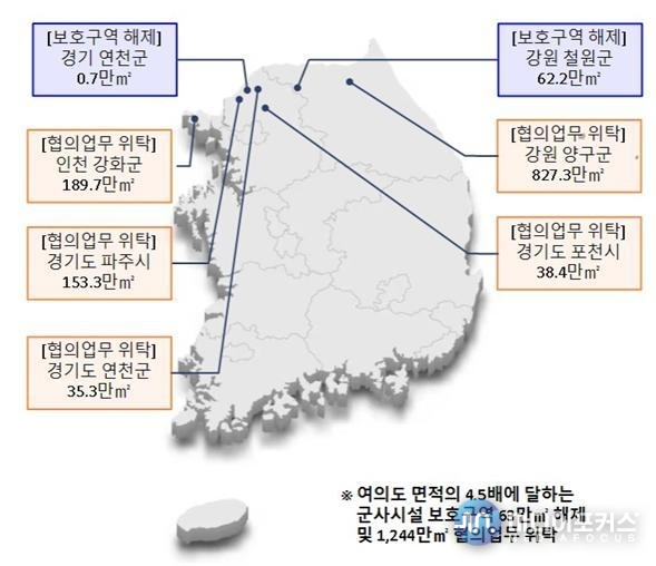 또한, 지난 12월 19일 합동참모본부는 보호구역 1,244만㎡에서의 건축 등 인허가 시 관할부대와의 협의 업무를 지방정부에 위탁 승인했다. 이로써 사전에 군(軍)이 지정한 높이 이하에서는 보호구역을 해제한 것과 같이 관할부대와의 협의 없이 건축 등이 가능해졌다.
