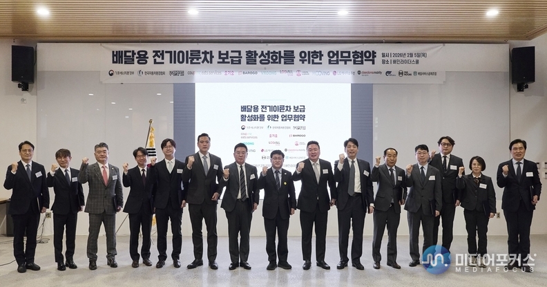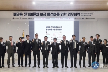 기후에너지환경부는 지난 5일 오전 배민라이더스쿨(경기도 하남시 소재)에서 △배달 중개 사업자(우아한형제들, 쿠팡이츠 서비스, 요기요), △배달대행사(바로고, 부릉, 생각대로), △전기이륜차 제작사(대동모빌리티, 케이알모터스, 디앤에이모터스), △전기이륜차 렌탈사(에이렌탈앤서비스, 무빙), △배달서비스공제조합, △엘지(LG) 에너지솔루션, △한국자동차환경협회 등과 배달용 전기이륜차 보급 활성화를 위한 업무협약을 체결했다.
