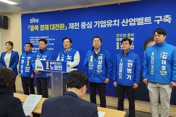 노 후보는 제천에서 열린 기자회견에서 충북 경제 구조 전환을 위한 ‘경제 대전환 전략’을 제시하고, 대기업 투자 유치와 신산업 육성을 주요 과제로 추진하겠다고 밝혔다.