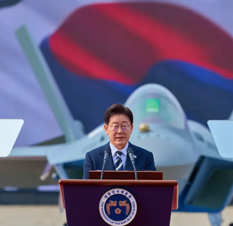 이재명 대통령이 지난 25일 한국항공우주산업(KAI)에서 열린 KF-21 양산 1호기 출고식에 참석해 한국형 전투기의 본격 양산을 선언했다.